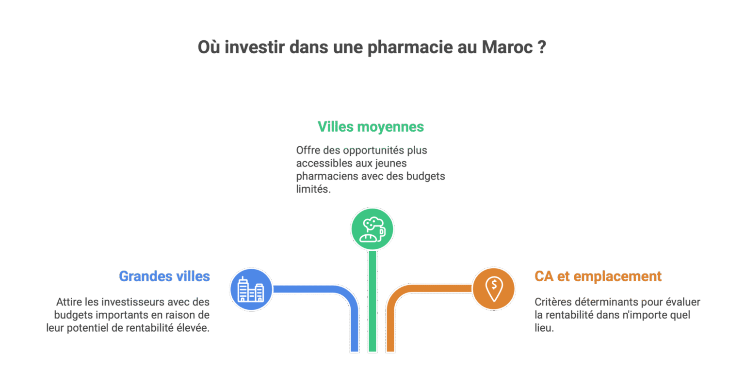Casablanca domine largement le marché, mais les villes régionales comme Tétouan, Agadir et Marrakechconfirment leur attractivité croissante pour les jeunes pharmaciens